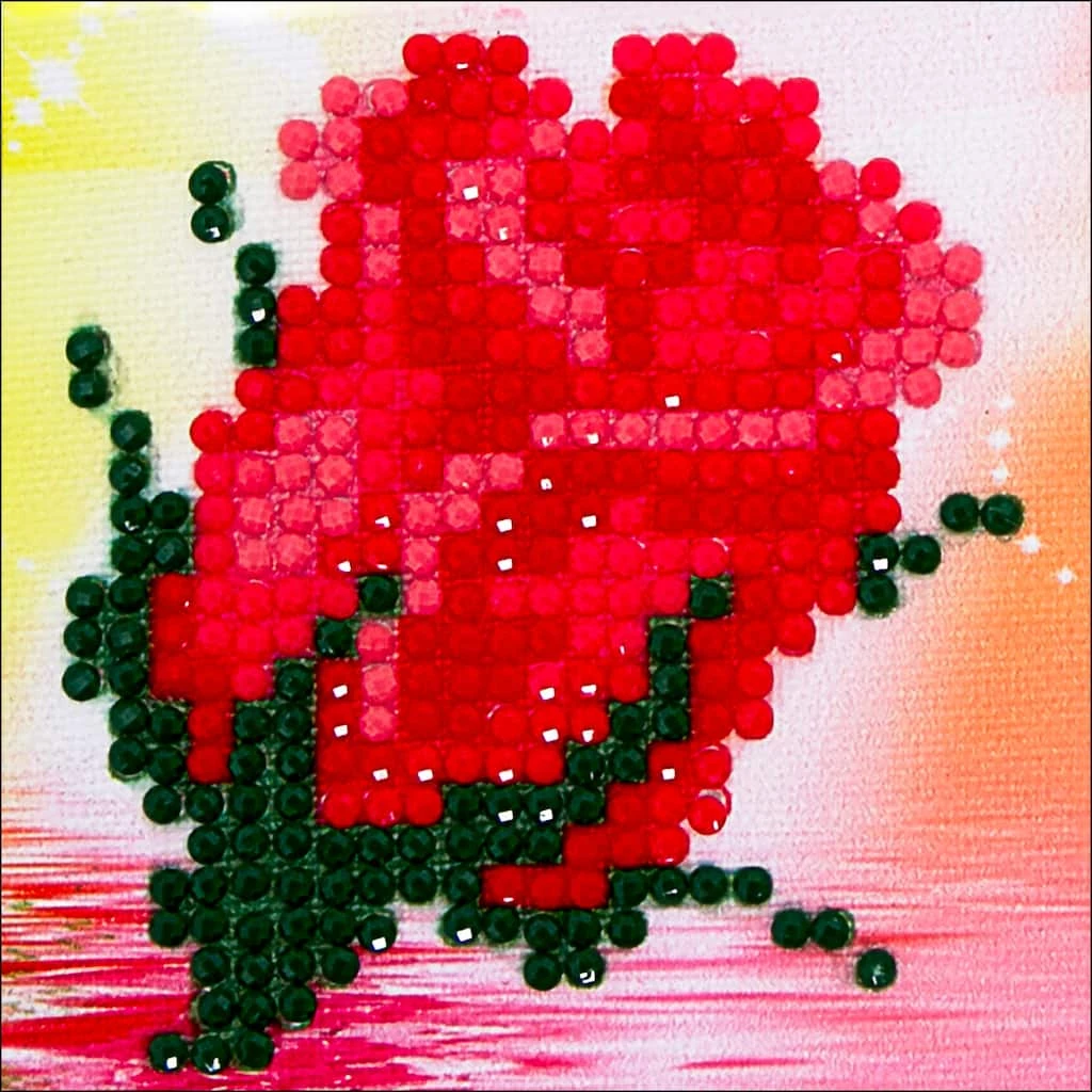 Quick, easy and fun to do! Just use the Diamond Dotz Stylus to pick up a dot and place it onto the matching square on the sticky print. This design features a beautiful, vibrant rosebud against a gradient background.
