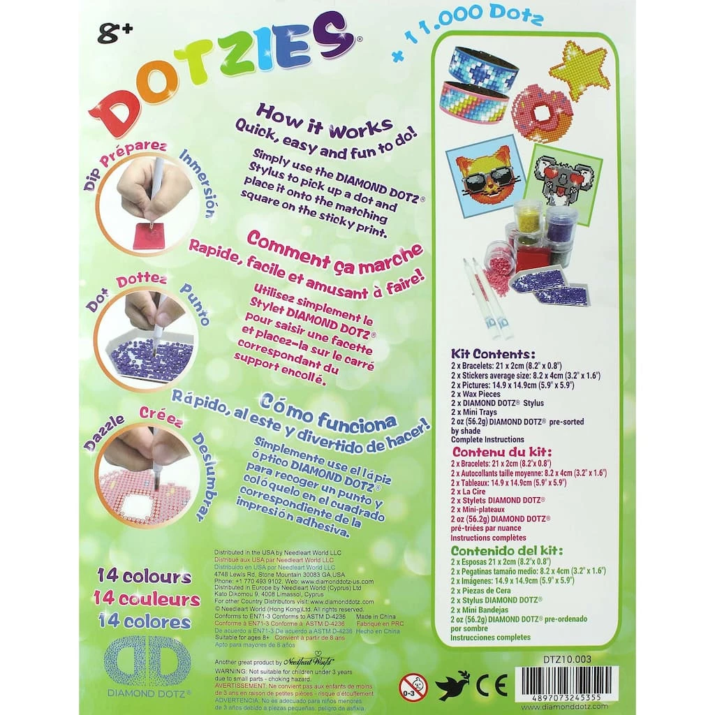 Diamond Dotz Facet Art allows you to create with beautiful faceted round diamonds. This kit contains foam bracelets, pre-painted stickers and pre-printed stickers that you can use to create beautiful masterpieces.