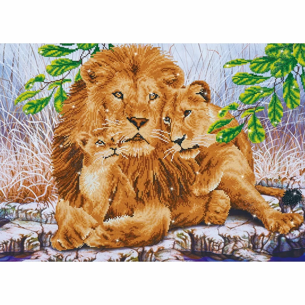 Create a stunning image of a family of lions among the Savannah grasses and acacia leaves with tiny diamond-like facets. This art kit includes everything you need to complete your project!
